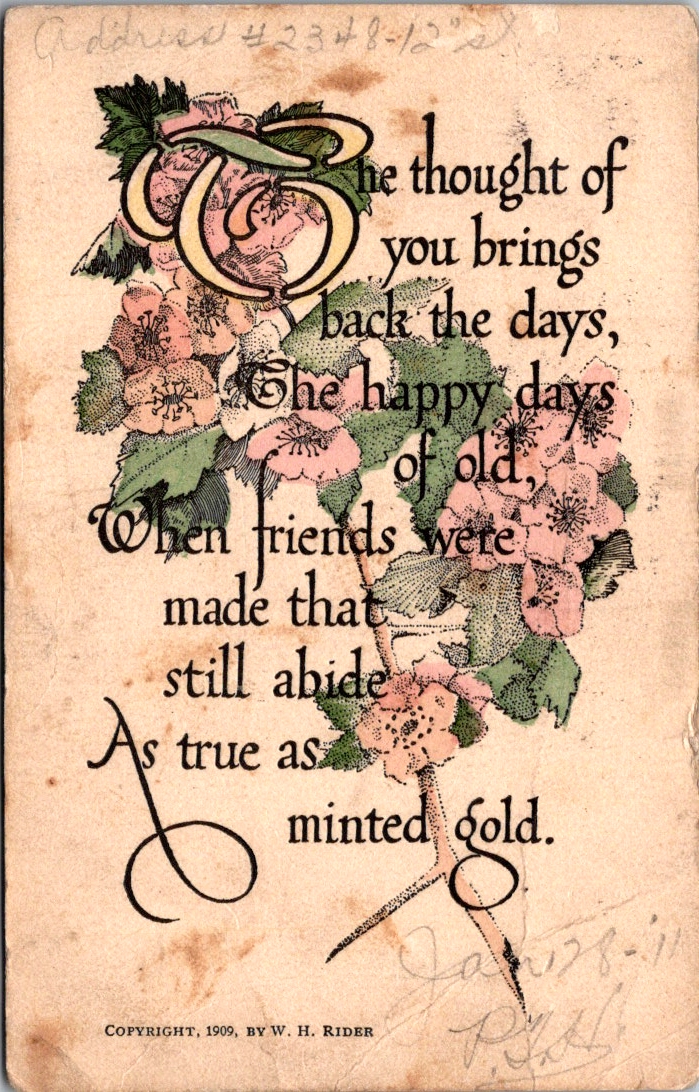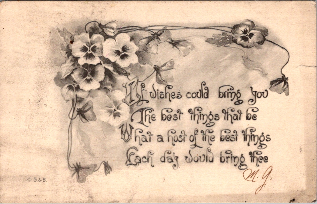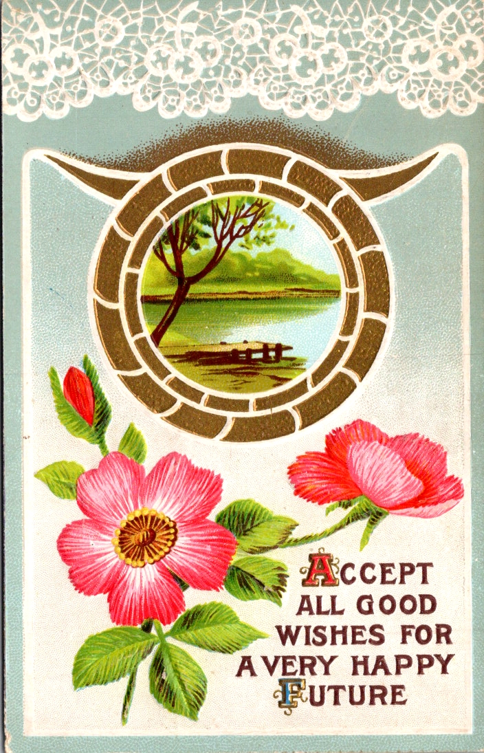 Only one card in the collection actually says Good Luck. The rest offer best wishes, happy hours, and kind thoughts from me to you. As we’ll see, luck is borne of relationships (and circumstances) lifted by the charitable wish for health, wealth, and wisdom.