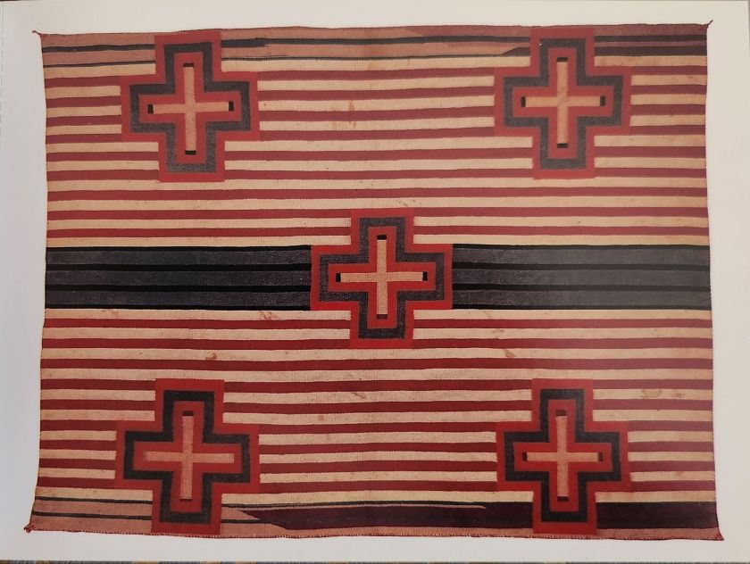 The first showed another Native textile—bold linear patterns in red, black, and cream with intense cross icons. Nora’s careful script on the back.
