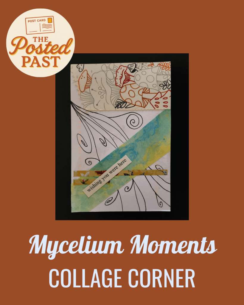 For our part, we collaborate with collage artists to make something small and special for everyone to enjoy. The artist requests a theme or two based on interests like, trees, farms, or portraits. We send an art card bundle and they create collage postcards with these materials. The postcard collages come back through the mail, celebrating the wear and tear of the postal service journey.