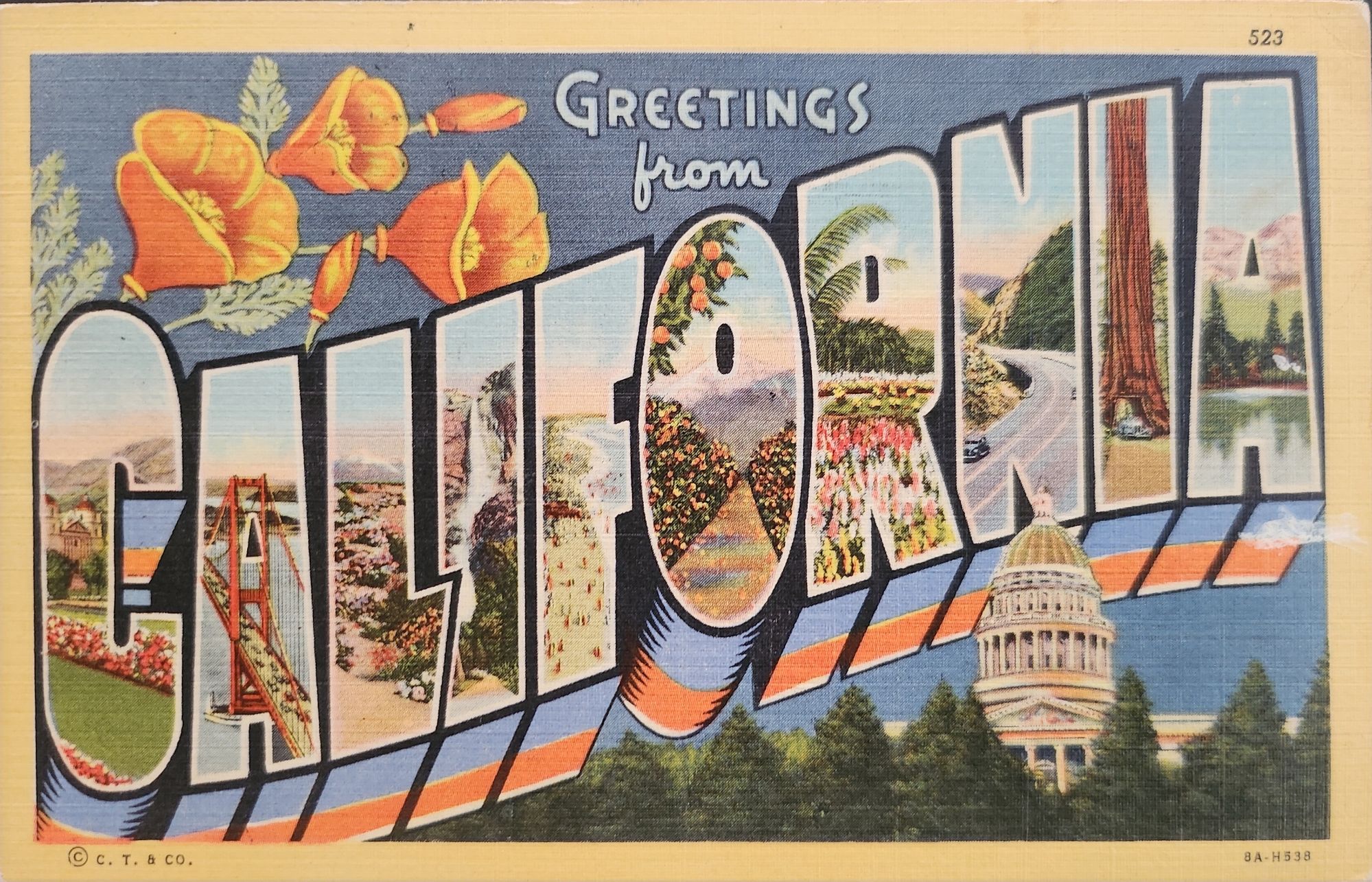 American statehood, regional identity, and natural heritage have rippled through various media over the past century. Iconic ‘large letter’ postcards, commemorative postal stamps, murals and more—all help us trace a fascinating journey of cultural transmission through the broader currents in American history, industrial development, and visual communication.