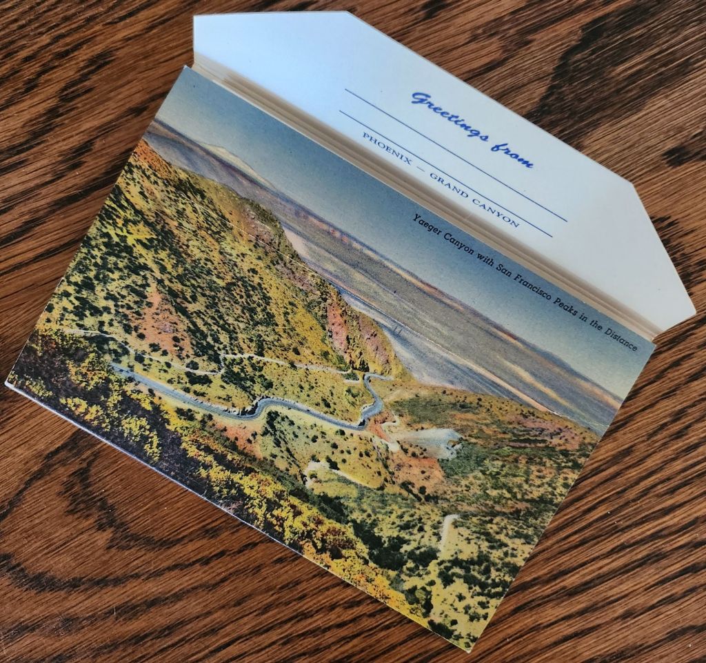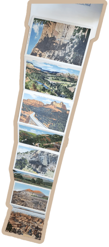 Mid-century postcards captured the wonder of American road trips in vivid color. This Phoenix to Grand Canyon collection reveals the story of car trips, roadside shops, and the natural landscape of Arizona.