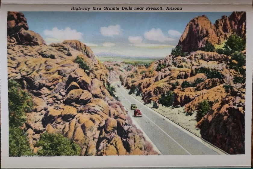 The Phoenix to Grand Canyon route via Oak Creek Canyon carved through America’s most scenic territory. In the 1940s and 1950s, this remained wild, undeveloped country. Starting in Phoenix, travelers navigated winding two-lane roads through Wickenburg, Yarnell, Prescott, Jerome, Clarkdale, Cottonwood, Flagstaff, and Williams.