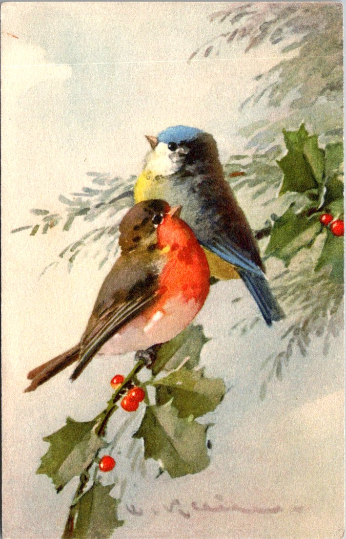 Holiday card publishers recognized this quiet bond. As postcards surged in popularity in the early 1900s, designers increasingly turned to the natural world for their winter imagery. American cards featured the birds people actually saw at feeders, perched on snow-laden branches, bright against winter skies. These cards created a secular holiday vocabulary, a way of marking the season that felt both celebratory and true to the world outside the window.