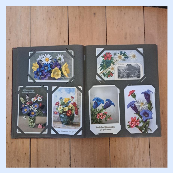 The collection I am showing on Instagram was a heritage of my grandmother (my mother’s mother). My grandmother lived from 1927 to 2020. When she died, my mother asked me if I would like to have her collection of postcards, because I always had a soft spot for those vintage postcards. Of course, I said yes. The first few months – I have to admit – I didn’t do much with those cards. I stored those four albums in the attic. Then I decided to do some handicraft work with them – decorating scrapbooks and such. But I soon found out that I couldn’t bring it over me to “destroy” the collection. I wasn’t sure what to do with it. Then, rather late, I discovered Instagram and I had the idea to share my grandmother’s collection with other people who love those vintage cards.